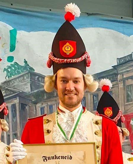 Aktiv im Karneval war ich ab 2016 und zum Ende der Session 22/23 lernte ich unseren Funken Kommandanten Peter kennen. Nach ein paar Monaten sahen wir uns beim Sommerbiwak im Schoduvelzentrum wieder. Es dauerte nun nicht mehr lange und ich trat dann bei den Roten Funken ein. Nach zwei Jahren Probezeit wurde ich vollwertiger Funke und bekam meinen Funkenstern. Ich kann euch sagen, es ist eine tolle Truppe.