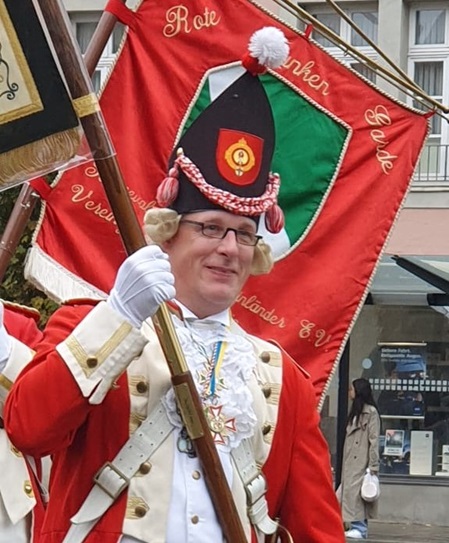 Aktiv im Karneval war ich ab 2016 und zum Ende der Session 22/23 lernte ich unseren Funken Kommandanten Peter kennen. Nach ein paar Monaten sahen wir uns beim Sommerbiwak im Schoduvelzentrum wieder. Es dauerte nun nicht mehr lange und ich trat dann bei den Roten Funken ein. Nach zwei Jahren Probezeit wurde ich vollwertiger Funke und bekam meinen Funkenstern. Ich kann euch sagen, es ist eine tolle Truppe.